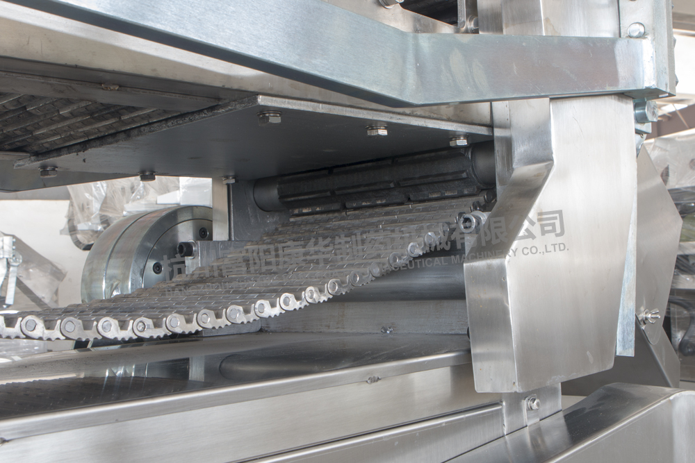 采用不銹鋼鏈條連續(xù)輸送物料,操作簡單,生產(chǎn)效率高;該機(jī)具有運(yùn)轉(zhuǎn)平穩(wěn)、噪音低、維修方便等特點,符合GMP要求。