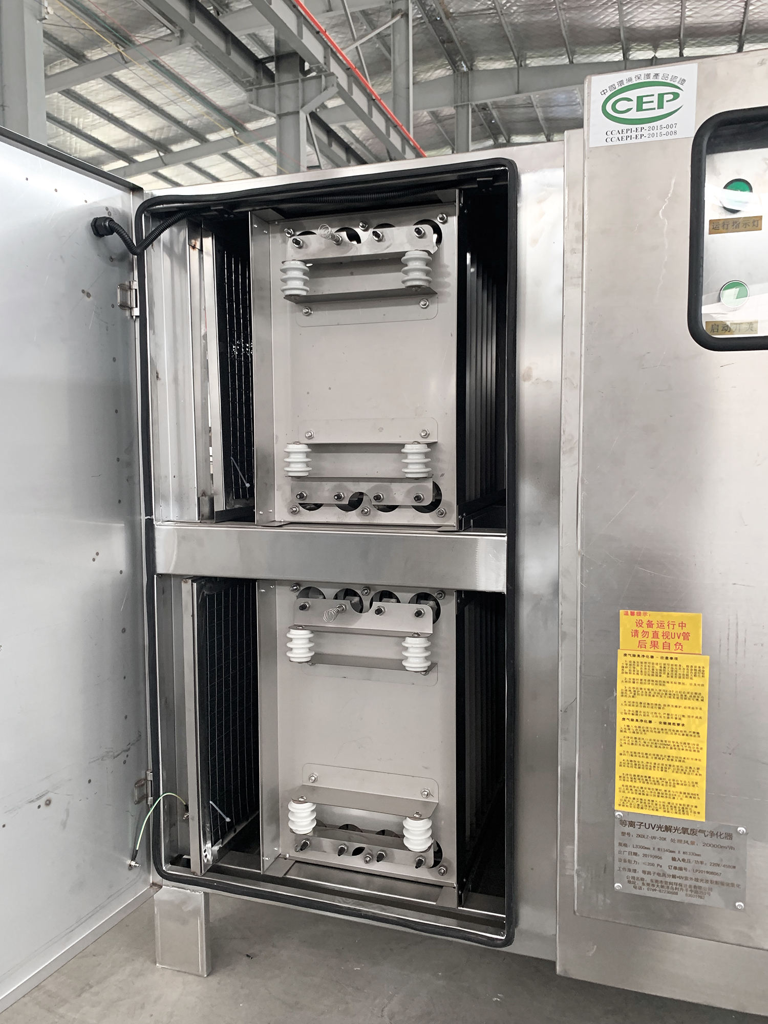 工作原理:在光解區(qū),利用特制的高能高臭氧UV紫外線光束照射異味氣體,經(jīng)多級凈化后徹底達到脫臭及殺滅細菌的目的;在分解區(qū),低溫等離子體降解污染物是利用這些高能電子、自由基等活性粒子和廢氣中的污染物作用,使污染物分子在極短的時間內(nèi)發(fā)生分解,并發(fā)生后續(xù)的各種反應(yīng)以達到降解污染物的目的。最終達到排放標準。